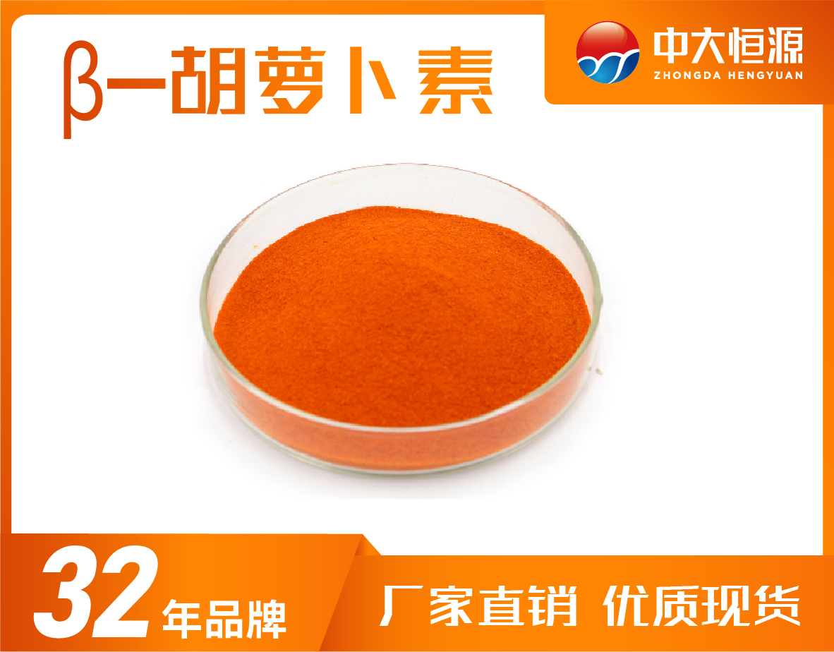 理化性質(zhì):β-胡蘿卜素為紫紅色至紅色結(jié)晶性粉末,無異味;微溶于油,溶于己烷等有機溶劑;光、熱穩(wěn)定性好;在pH值3.0—10.0之間穩(wěn)定 。