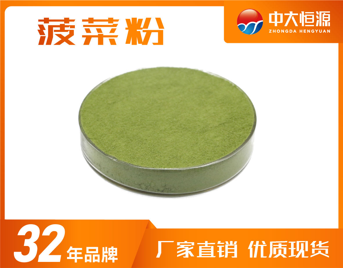 本產(chǎn)品以新鮮優(yōu)質(zhì)的菠菜為原料噴霧干燥而成,具有濃郁的菠菜氣滋味,不僅保留了菠菜的營養(yǎng)成分,且附帶著色功能,粉末疏松、不易結(jié)塊。