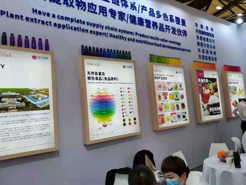 2021年4月27-30日,河南中大恒源生物科技股份有限公司參加在上海新國(guó)際博覽中心舉辦的第23屆中國(guó)國(guó)際焙烤展覽會(huì)。公司以“擁有完善的供應(yīng)鏈體系,產(chǎn)品多色系覆蓋,植物提取物應(yīng)用專家,健康營(yíng)養(yǎng)品開發(fā)伙伴”為主題,展出了健康食品原料、健康保健產(chǎn)品、天然色素及賦色食品、烘培產(chǎn)品、糖果/巧克力產(chǎn)品、飲料類產(chǎn)品及應(yīng)用解決方案。展廳內(nèi)人頭攢動(dòng),客流不斷,或饒有興趣的品評(píng)產(chǎn)品,或深入洽談合作事宜。