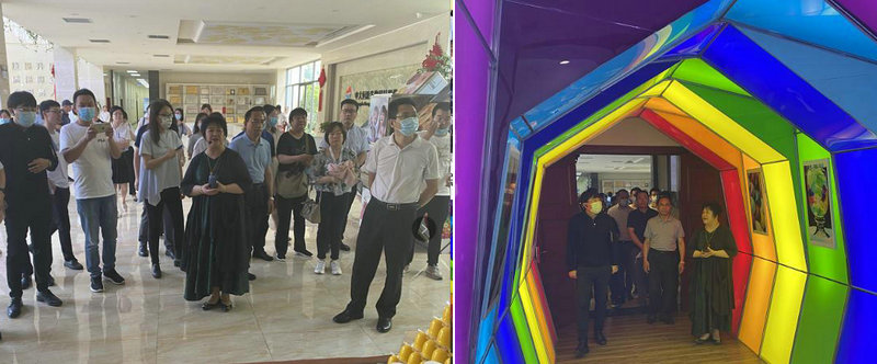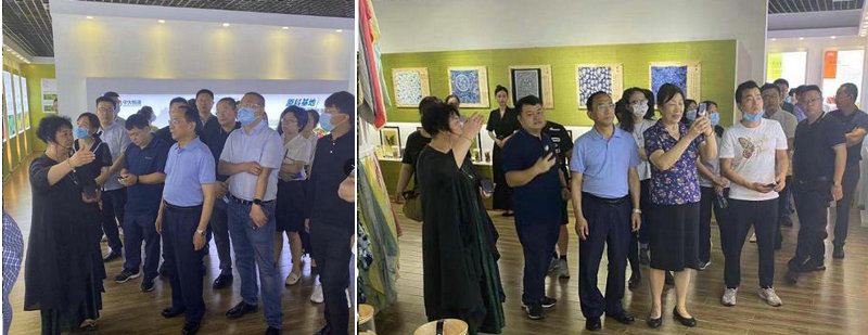 In the natural plant printing and dyeing exhibition hall, the colorful products are displayed, which arouses the strong interest of the visitors. Mr. Wen gave a witty introduction, and the guests watched intently.