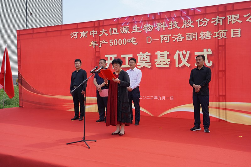 9月1日中大恒源公司舉行D-阿洛酮糖項(xiàng)目開(kāi)工奠基儀式,項(xiàng)目總投資1.6個(gè)億,建設(shè)周期8個(gè)月。臨潁縣縣委副書(shū)記、縣長(zhǎng)李俊偉、縣委常委李紅偉、經(jīng)開(kāi)區(qū)管委會(huì)副主任邢培忠、中大恒源董事長(zhǎng)文雁君出席儀式并培土奠基。