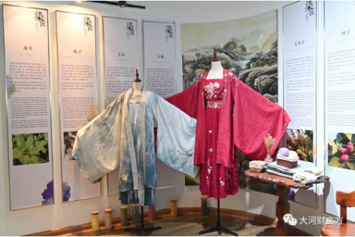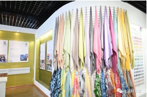 穿過展廳入口的七彩走廊,一個充滿童話色彩的世界展現(xiàn)在記者眼前。五彩斑斕的色素原料及成品,五顏六色的糖果、糕點和飲料,純植物色素印染、頗有些“莫蘭迪色”風味的衣服與絲巾……